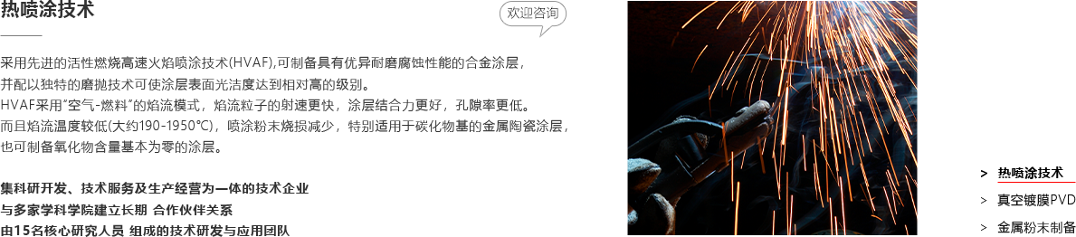 目前研發(fā)的高性能耐磨耐蝕涂層和新功能器件薄膜等先進(jìn)涂層復(fù)合制備工藝技術(shù),應(yīng)用于表面工程領(lǐng)域,顯著改善精密零部件和工模具的性能,提升使用壽命和質(zhì)量,提高生產(chǎn)效率,降低綜合成本,為微納結(jié)構(gòu)涂層核心金屬零部件制造量身定制綜合解決方案,是集研發(fā)、設(shè)計(jì)、生產(chǎn)、銷(xiāo)售、服務(wù)于一體的國(guó)家高新技術(shù)企業(yè)。